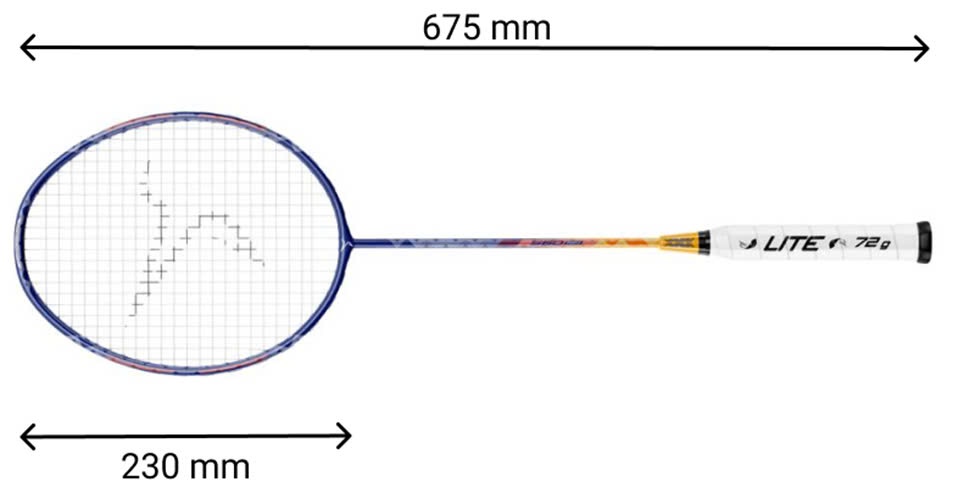 Chiều dài của vợt cầu lông thường nằm trong khoảng từ 665 – 672 mm và không vượt quá 680 mm